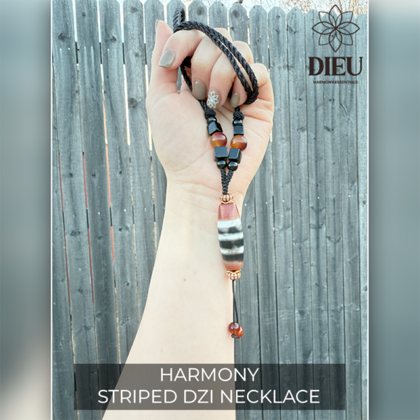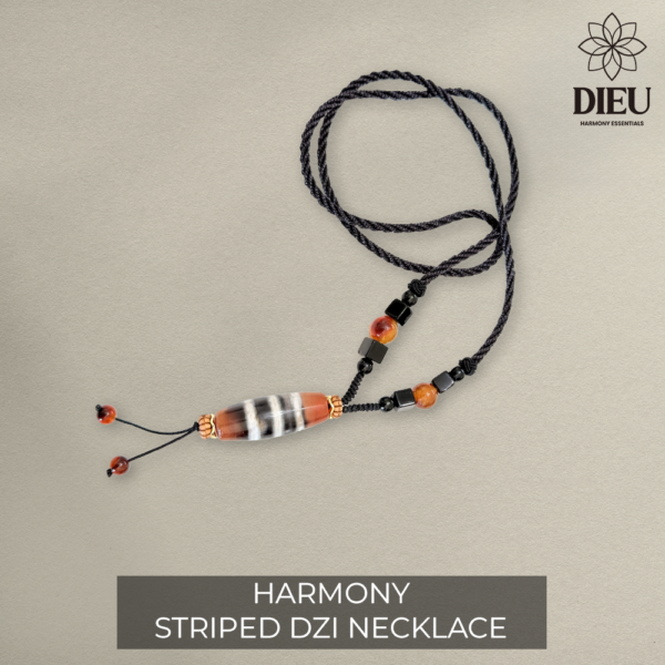 - Striped Dzi bead, representing balance, adaptability, and duality
