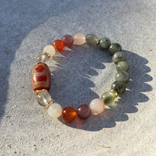 Unlock limitless abundance and prosperity. This potent fusion of Kubera Dzi, Agate, and Labradorite attracts wealth, financial growth, and harmony. Rooted in stability and shielded from negativity, you’ll confidently manifest abundance, transform your life, and radiate prosperity.